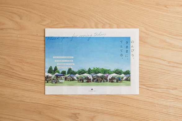 てとて市2018のパンフレットを制作しました。イベント当日に会場マップとしてお客さまにお渡しするもので、見やすさ、使いやすさを意識して制作しました。テーマカラー以外の彩度を抑え、紙面をできるだけスッキリさせました。裏面にはイベント概要のほかに会場の紹介なども入れることで、読み物としても楽しんでいただく工夫をしています。pamphlet